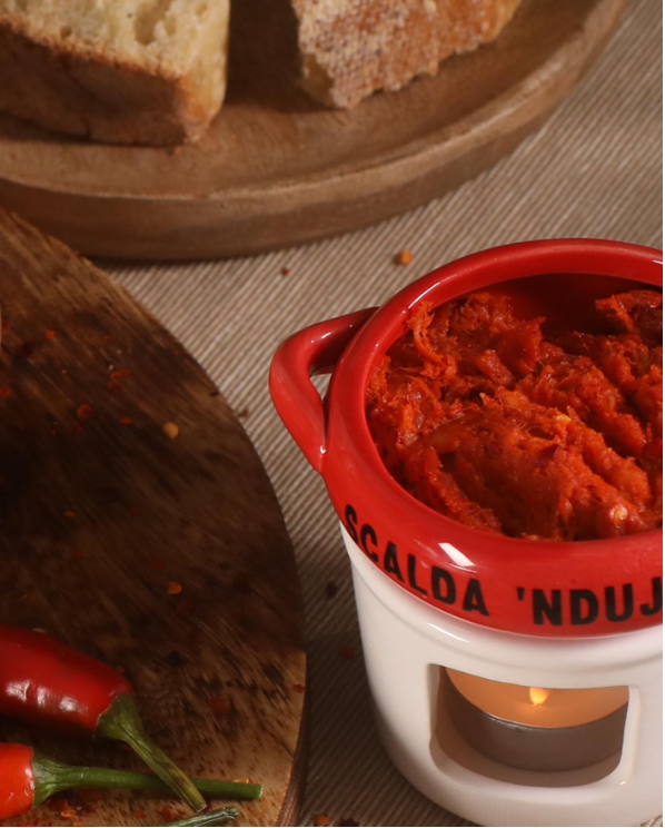 La ‘Nduja di Calabria è molto più di un semplice salume: è un’icona della gastronomia calabrese, un prodotto unico nel suo genere, dal sapore intenso e dalla consistenza cremosa. Questa specialità, amata per il suo carattere deciso e la sua versatilità in cucina, è protagonista di piatti tradizionali e innovativi. Prodotta con carne di suino e abbondante peperoncino calabrese, la ‘Nduja si distingue per il suo gusto avvolgente e la sua capacità di esaltare ogni ricetta. Tipica del borgo di Spilinga, sulle colline del Monte Poro, la ‘Nduja è oggi conosciuta e apprezzata in tutto il mondo come simbolo del sapere artigianale calabrese.